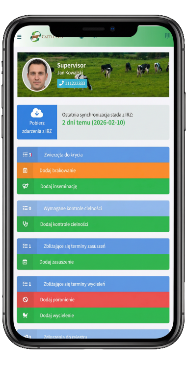 Dzięki integracji z IRZ oraz możliwości pracy wielu użytkowników (hodowca, inseminator, weterynarz), większość danych wprowadza się automatycznie — bez konieczności ręcznego przepisywania dokumentacji.